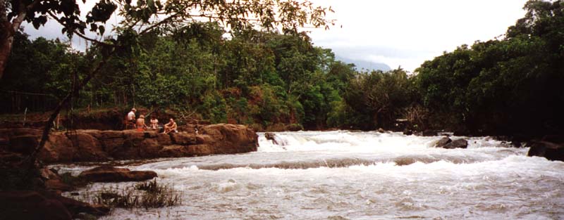Xavier, Bella, Carolla, and Hamoots relax by the waterfall in Tadlo after a swim.